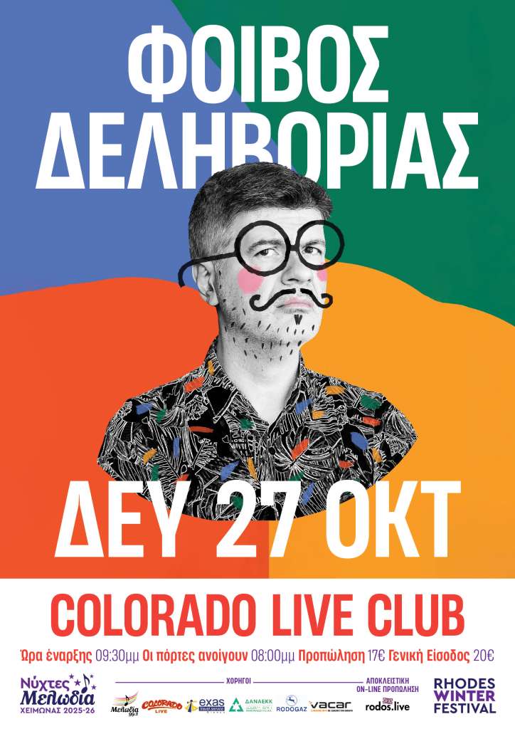 Ο Φοίβος Δεληβοριάς εγκαινιάζει το χειμερινό καλλιτεχνικό πρόγραμμα του αγαπημένου σταθμού της πόλης μας Μελωδία Ρόδου 103.7 με μια μοναδική εμφάνιση στη θρυλική μουσική σκηνή του Colorado
