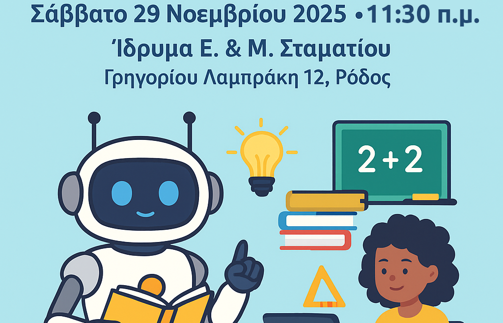 Το Ίδρυμα Ε. & Μ. Σταματίου σας προσκαλεί σε μια επίκαιρη εκδήλωση για τις προκλήσεις και τις ευκαιρίες που φέρνει η Τεχνητή Νοημοσύνηστο σχολείο.…